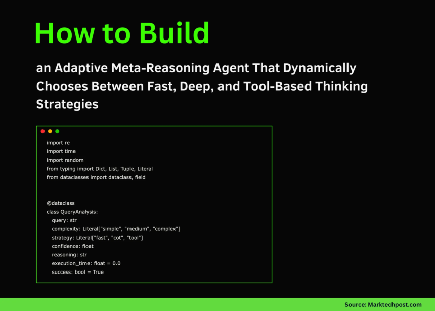 We begin this tutorial by building a meta-reasoning agent that decides how to think before it thinks. Instead of applying the same reasoning process for every query, we design a system that evaluates complexity, chooses between fast heuristics, deep chain-of-thought reasoning, or tool-based computation, and then adapts its behaviour in real time. By examining each component, we understand how an intelligent agent can regulate its cognitive effort, balance speed and accuracy, and follow a strategy that aligns with the problem’s nature. By doing this, we experience the shift from reactive answering to strategic reasoning. Check out the FULL CODE NOTEBOOK.
