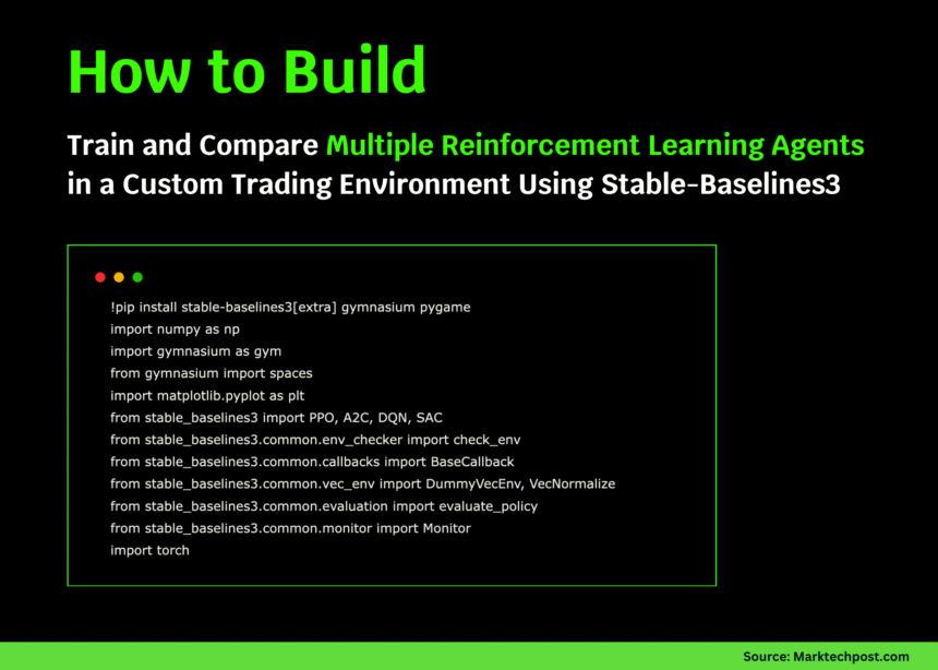 In this tutorial, we explore advanced applications of Stable-Baselines3 in reinforcement learning. We design a fully functional, custom trading environment, integrate multiple algorithms such as PPO and A2C, and develop our own training callbacks for performance tracking. As we progress, we train, evaluate, and visualize agent performance to compare algorithmic efficiency, learning curves, and decision strategies, all within a streamlined workflow that runs entirely offline. Check out the FULL CODES here.