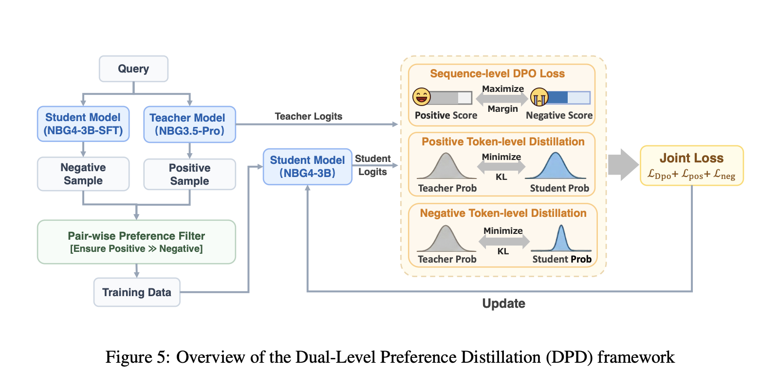 Distillation uses Dual-Level Preference Distillation, DPD. The student learns token level distributions from the teacher model, while a sequence level DPO objective maximizes the margin between positive and negative responses. Positives come from sampling the teacher Nanbeige3.5-Pro, negatives are sampled from the 3B student, and distillation is applied on both sample types to reduce confident errors and improve alternatives.