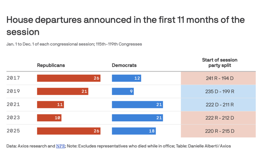 House departures announced in the first 11 months of the session